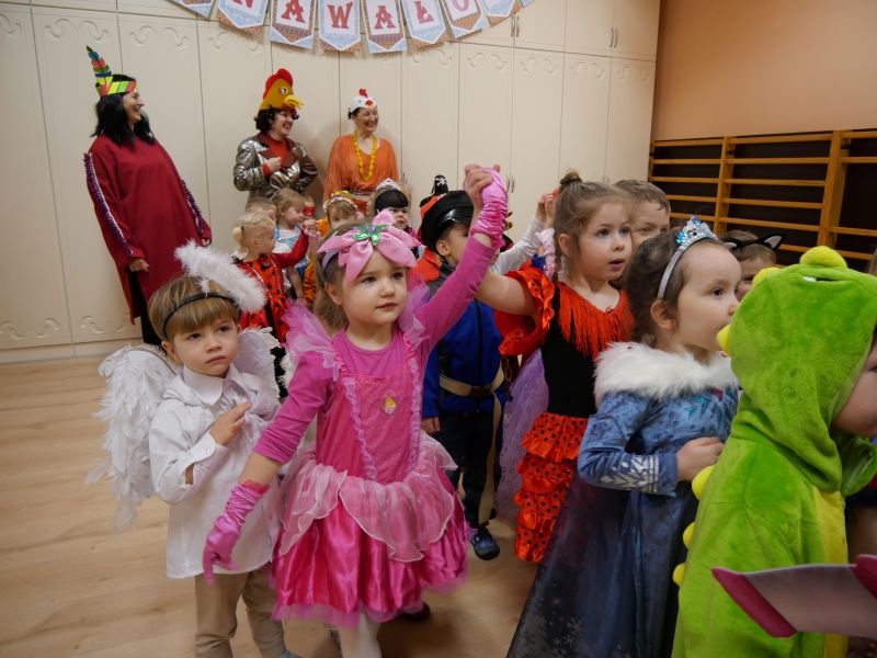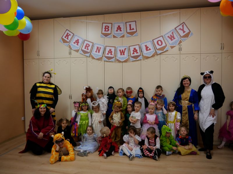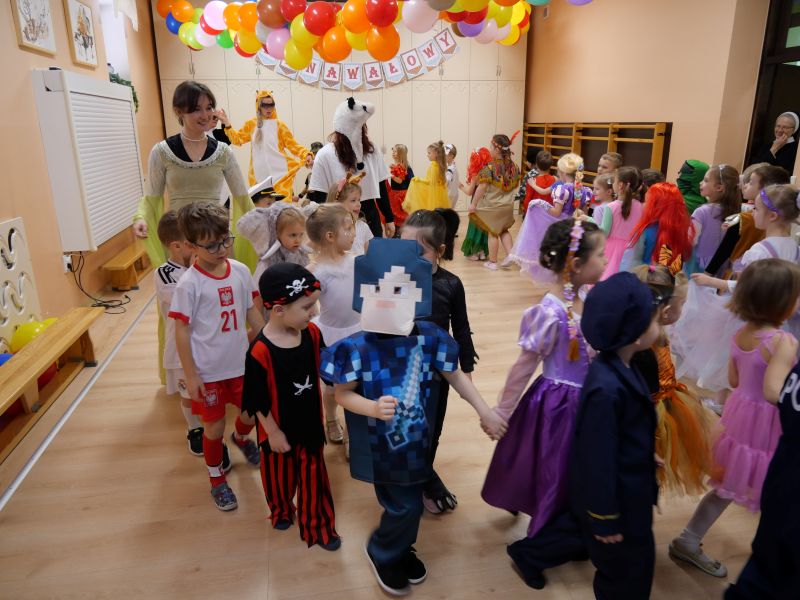 17 lutego nasze przedszkole wypełniło się radością, kolorami i dziecięcym śmiechem podczas wyjątkowego balu karnawałowego. Ciepłą i pełną uśmiechu atmosferę stworzyły Panda i Żyrafa, które z ogromnym zaangażowaniem zaprosiły dzieci do wspólnej zabawy. Mali uczestnicy zachwycali pięknymi, bajkowymi przebraniami, dzięki którym sala zamieniła się w prawdziwą krainę wyobraźni. Przygotowane konkursy i zabawy sprawiły wszystkim mnóstwo radości i pozwoliły poczuć magię karnawału. To był dzień pełen serdeczności, tańca i niezapomnianych chwil, które na długo pozostaną w naszych sercach.