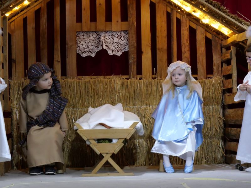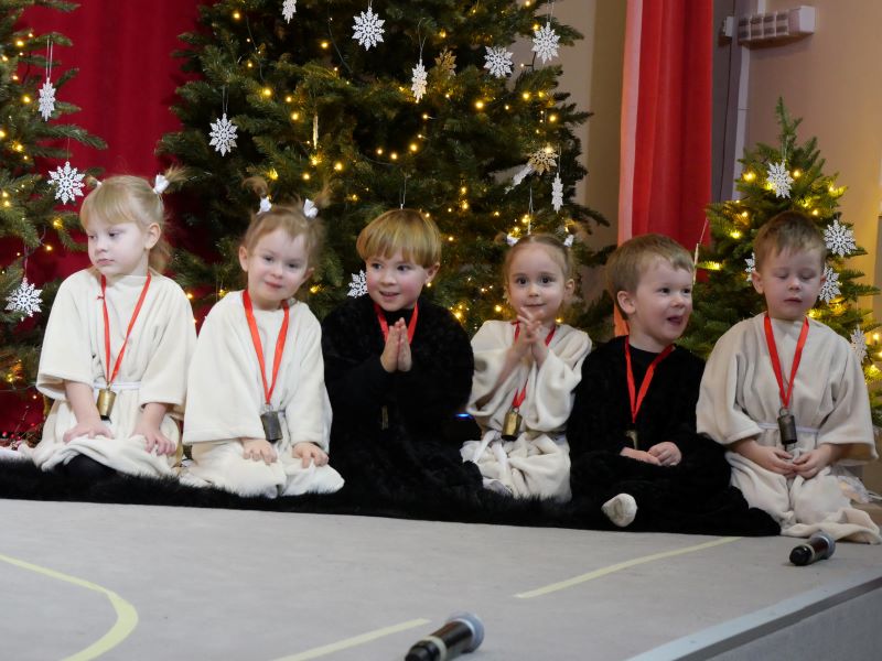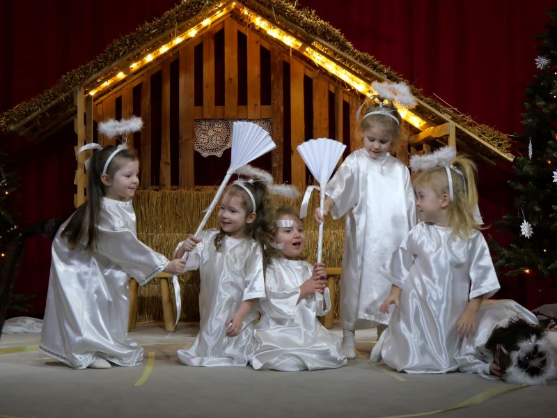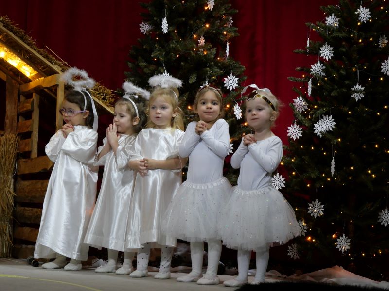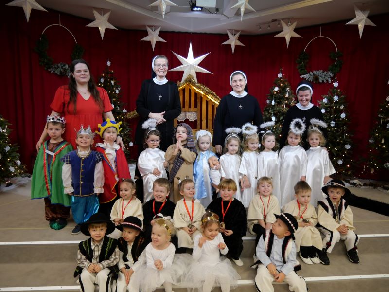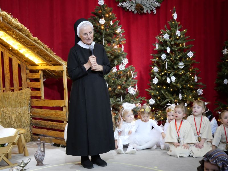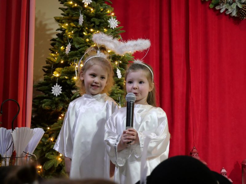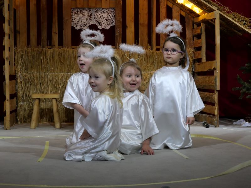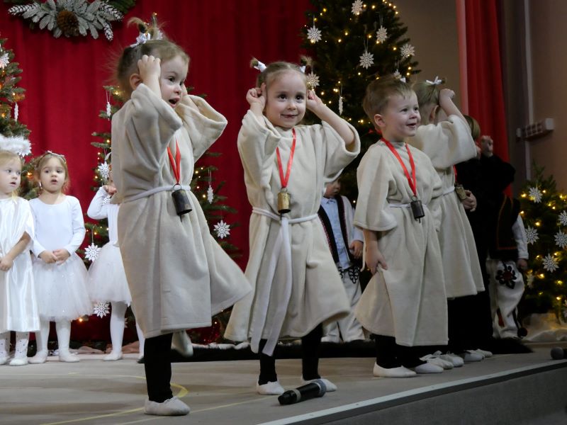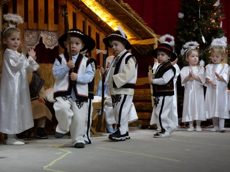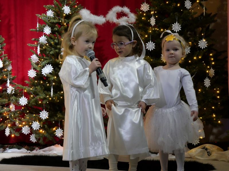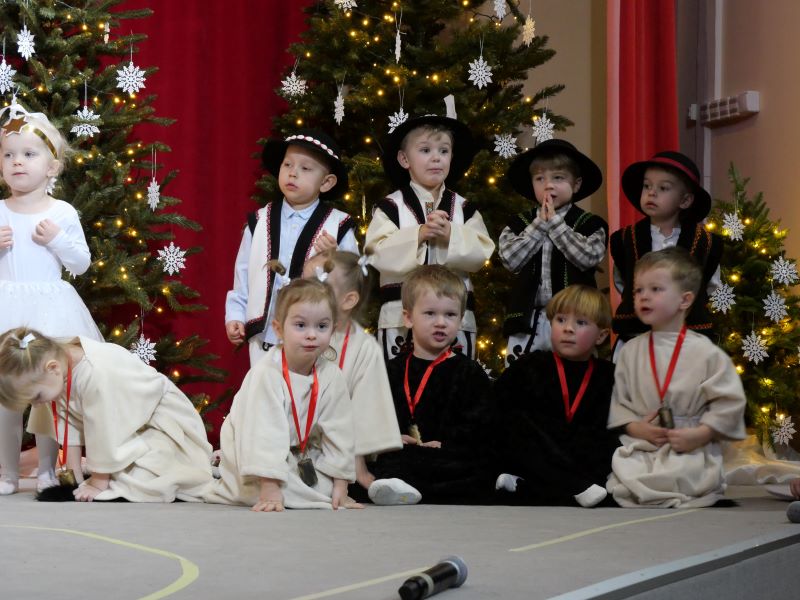 Najmłodsze przedszkolaki z wielkim zaangażowaniem zaprezentowały swoje pierwsze jasełkowe role. Dzieci recytowały krótkie wierszyki i śpiewały kolędy, wkładając w występ całe swoje serduszka. Ich uśmiechy i spontaniczność wzruszyły wszystkich Babcie i Dziadków.