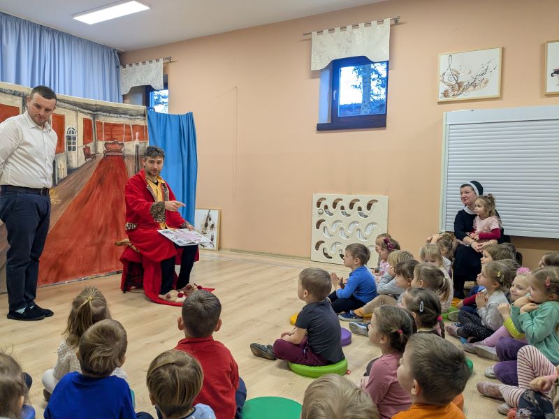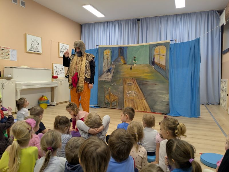 Do naszego przedszkola zawitał Teatr Eden z wyjątkowym przedstawieniem pt. „Legenda o Św. Mikołaju”, które przybliżyło dzieciom prawdziwą historię Mikołaja – chłopca z bogatego domu, który dostrzegając biedę wokół siebie, postanowił pomagać potrzebującym. Przedszkolaki z dużym zainteresowaniem śledziły losy bohatera, ucząc się wrażliwości i dobroci. Spektakl w przystępny i poruszający sposób ukazał, że dawanie innym przynosi więcej radości niż branie, a dzielenie się z potrzebującymi jest niezwykle ważne. Spotkanie z teatrem było dla dzieci nie tylko świetną zabawą, ale także cenną lekcją empatii i bezinteresownej pomocy.