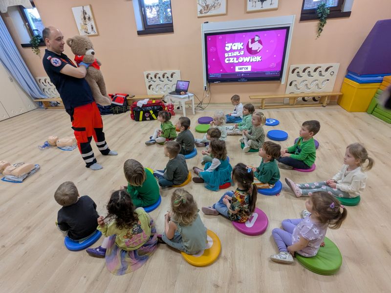 Podczas spotkania dzieci dowiedziały się, jak działa organizm człowieka oraz jak ważną rolę pełni serce. Ratownik medyczny w ciekawy i dostosowany do wieku sposób wyjaśnił, dlaczego warto dbać o zdrowie i jak można pomóc drugiej osobie w sytuacji zagrożenia.