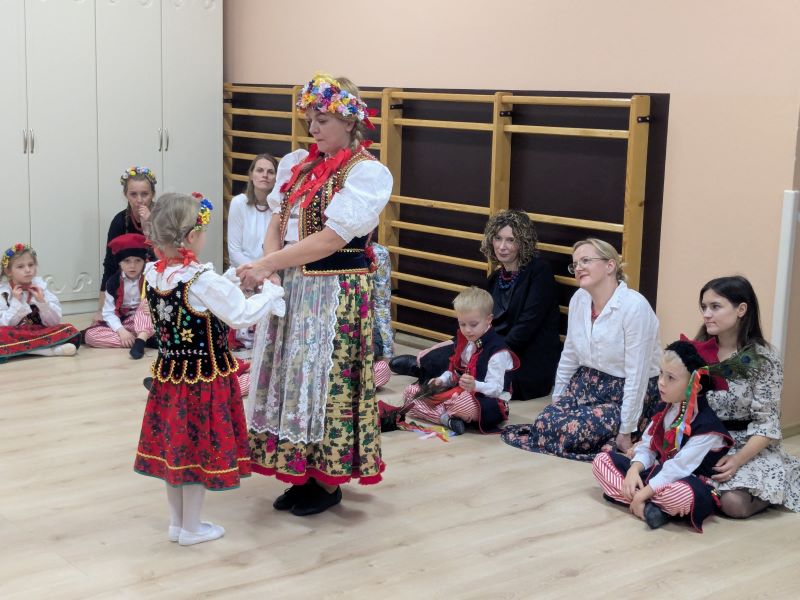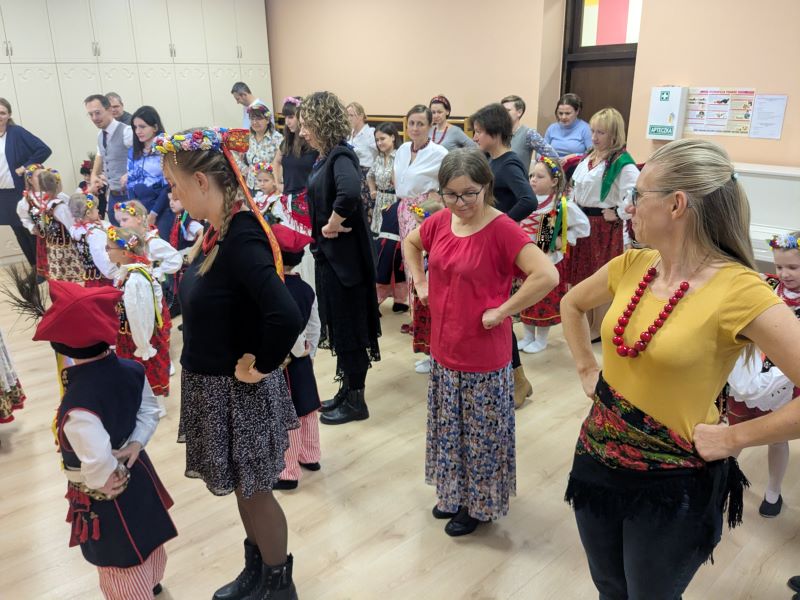 Dzieci i dorośli mieli okazję poznać kroki wybranych tańców narodowych oraz wspólnie je zatańczyć, czerpiąc radość ze wspólnej aktywności. Warsztaty stworzyły wspaniałą okazję do integracji, dobrej zabawy i poznawania polskiej kultury w praktyczny, pełen uśmiechu sposób.